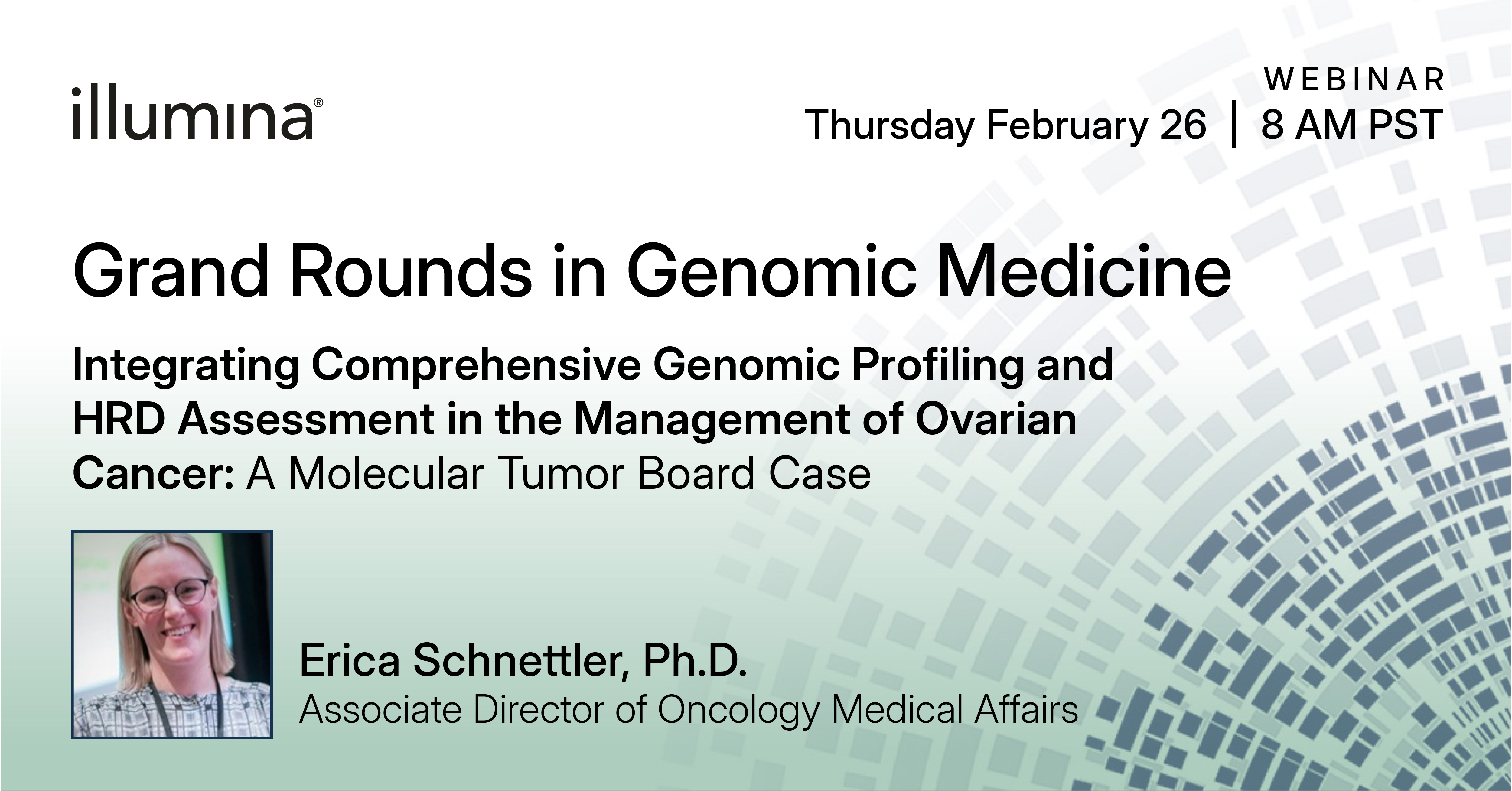 Perspectives bridging genomics, pathology, and clinical practice for holistic interpretation. Participants are encouraged to bring their complex case questions for collaborative discussion with Illumina Medical Affairs, thought leaders, and peers in a highly interactive forum.