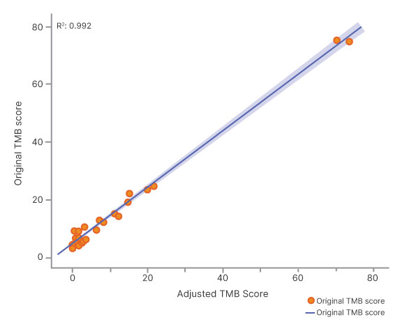 생식세포 및 CH 변이 필터링에 대한 고급 바이오인포매틱스를 활용하는 TSO 500 ctDNA v2의 Tumor-only 워크플로우는 종양 정상 워크플로우에 비해 일치성이 높은 bTMB를 생성합니다.