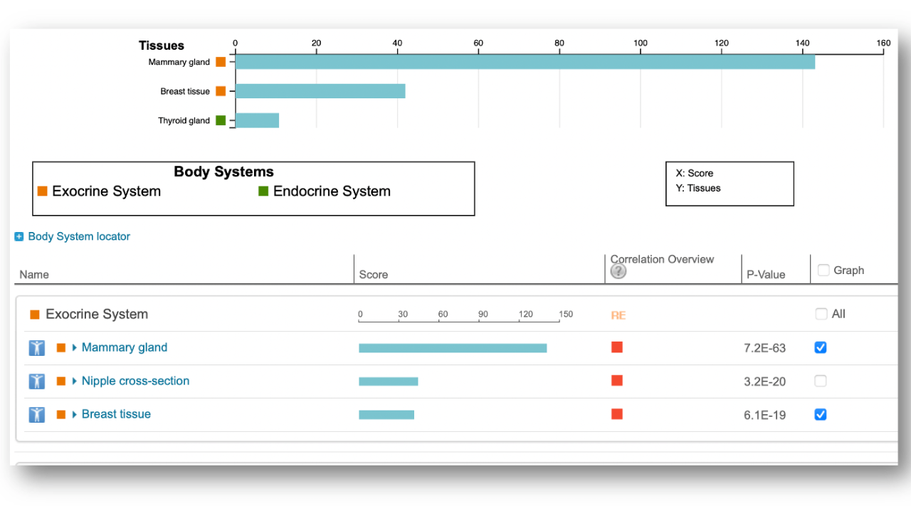 신체 아틀라스는 유전자가 발현되는 위치와 해당 위치 내의 발현 수준에 대한 인사이트을 제공합니다.